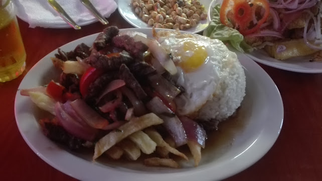 Entre de casualidad y encontre que el lomo saltado de 20 soles es para dos personas tremenda montaña de comida. El lugar es algo oscuro y ponen mucha musica variada. Lo que mas venden es cerveza y uno se puede quedar desde el mediodia hasta altas horas de la noche. Todos los dias hay musica, baile y comida.